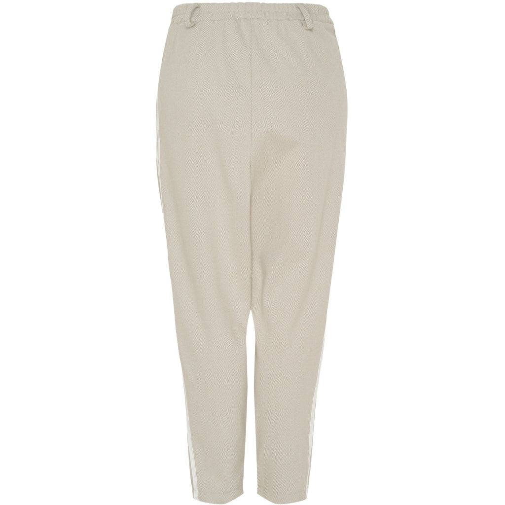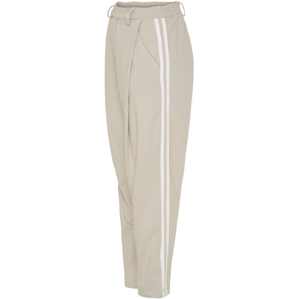 Snygga och bekväma byxor från Marta Du Château med ränder längs båda benen. Byxorna har resår i midjan. De är supermångsidiga och kan matchas med väst eller jacka från samma serie.