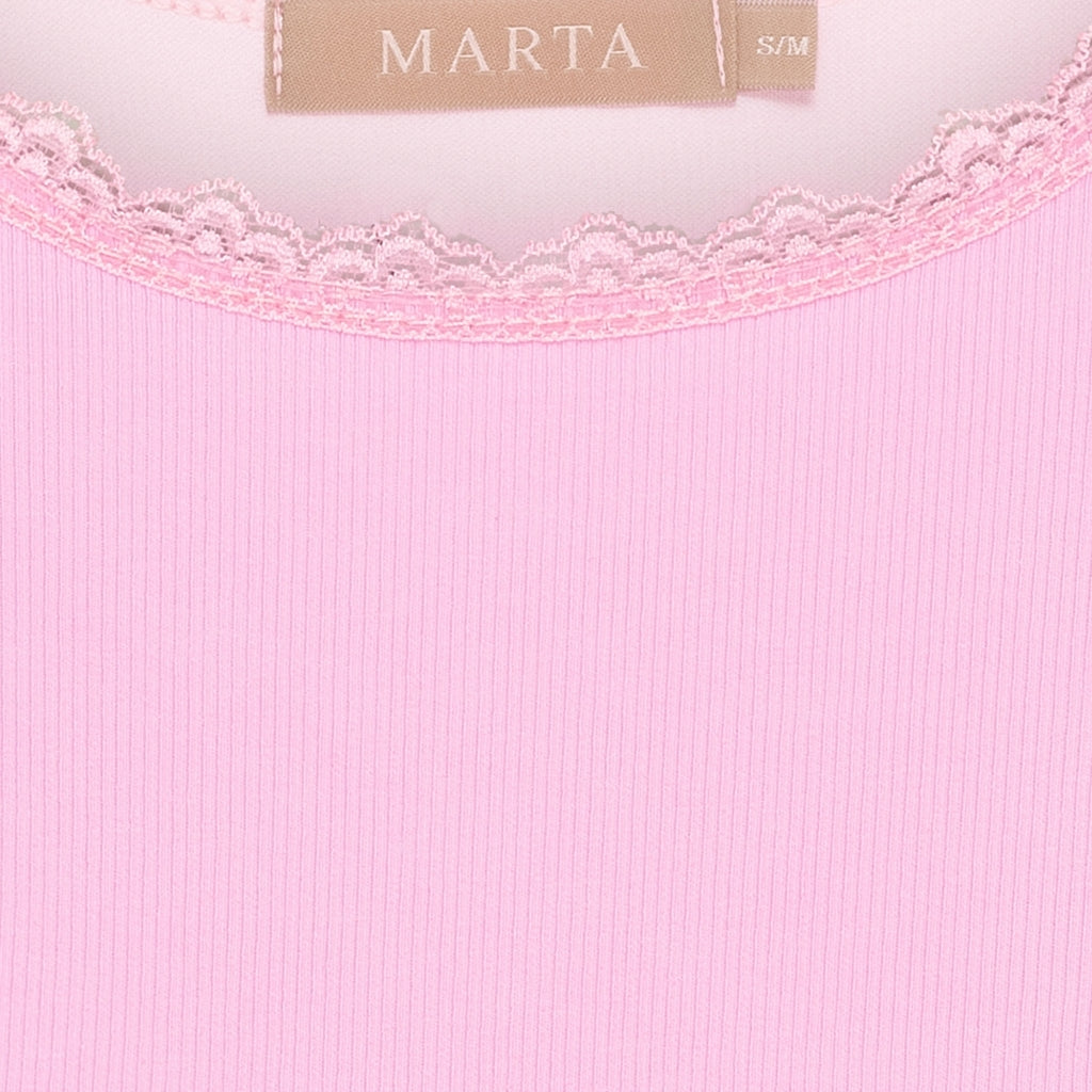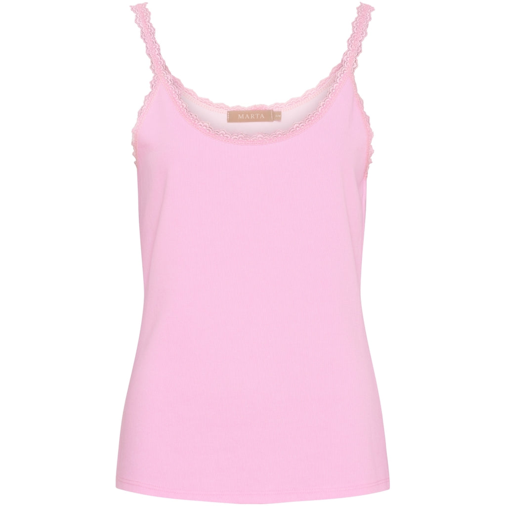 Fin basribbat topp från Marta Du Château. Toppen har en fin volang- och spetskant, och är idealisk att bära under toppar och skjortor på svala dagar. På sommaren, använd den ensam med en kjol eller shorts.