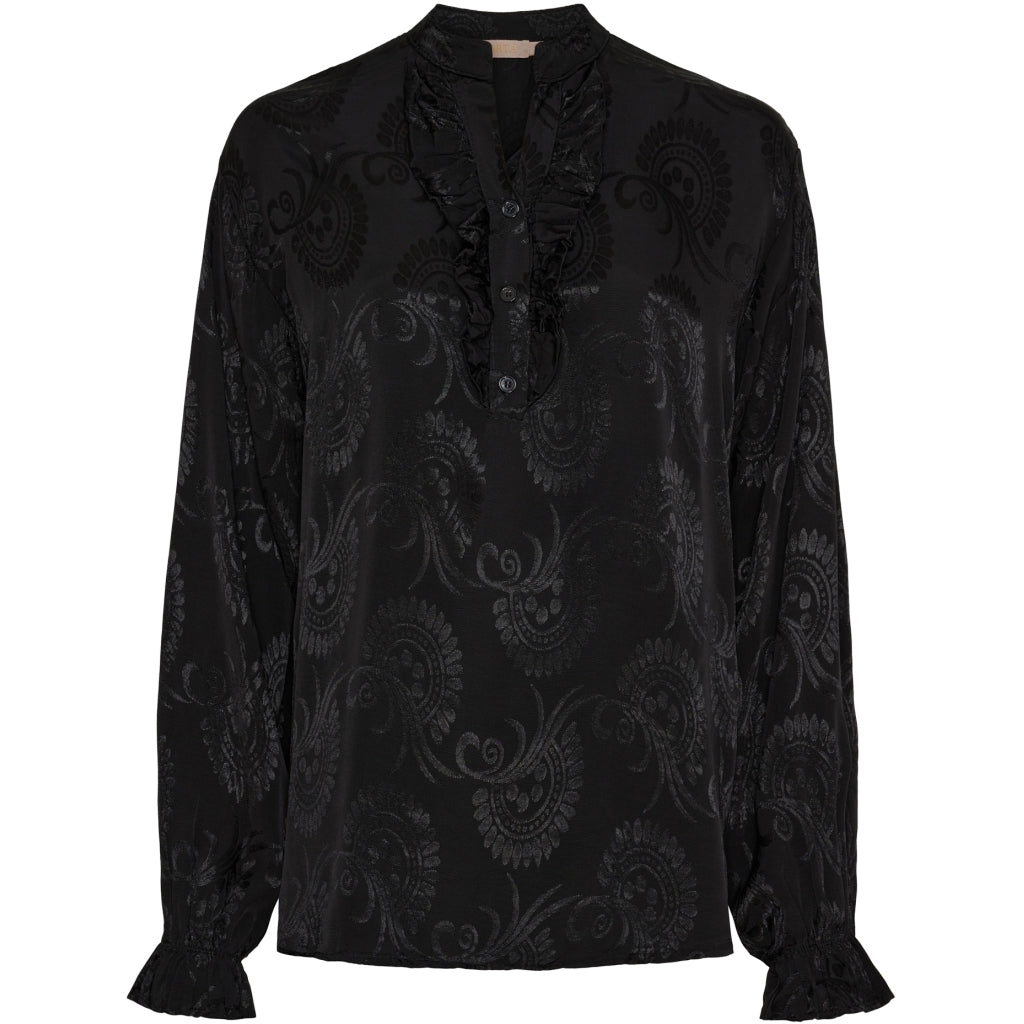 Vacker blus från Marta med volanger och en elegant tryck. Blusen kan stylas med matchande byxor, och kan användas både till vardags och finare tillfällen.