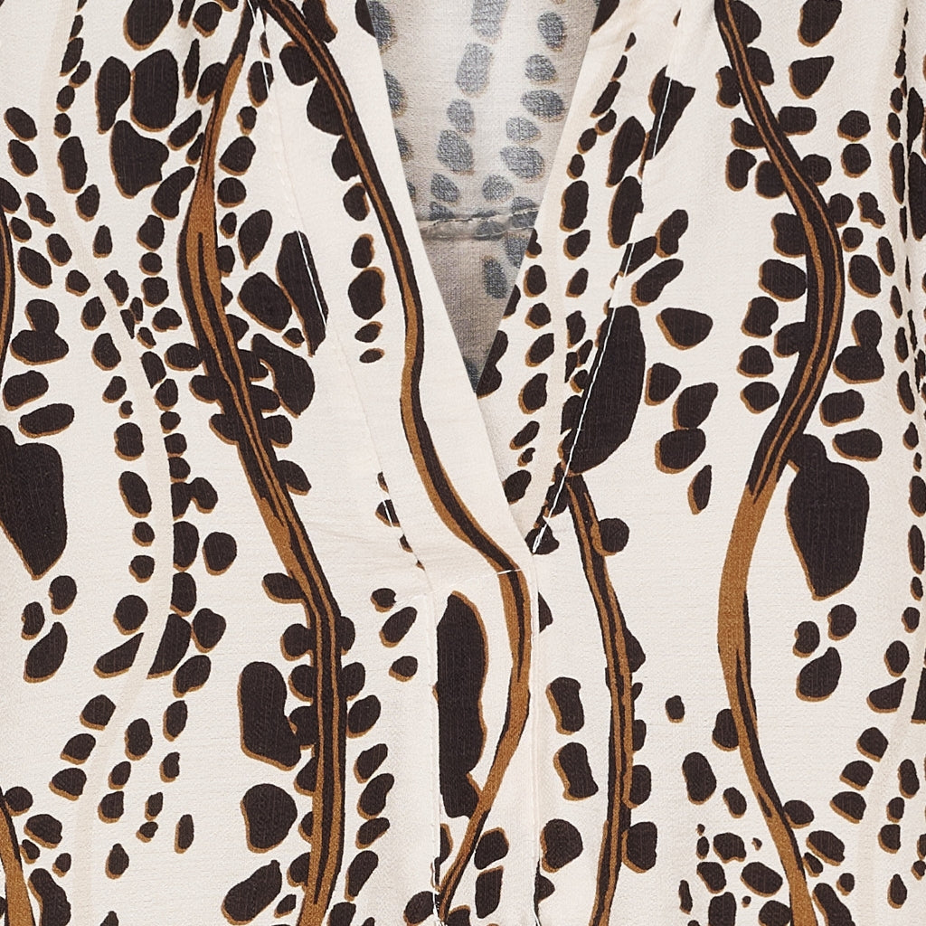 Elegant v-ringad klänning från Marta Du Château i det finaste trycket. Modellen har 3/4-ärmar och når ungefär till mitten av smalbenet. Den kan användas till vardags med ett par sneakers och till festliga tillfällen med en slingback eller stiletto.