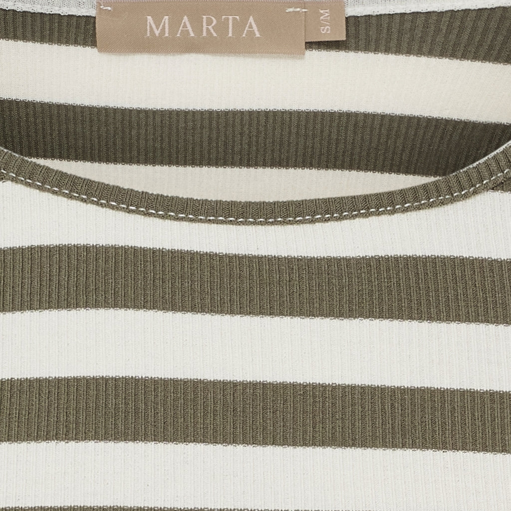 Grundläggande randig blus från Marta du Château med 3/4-ärmar. Perfekt för vardagsbruk med ett par jeans, sneakers eller stövlar. Använd den också med en kofta på kalla dagar.