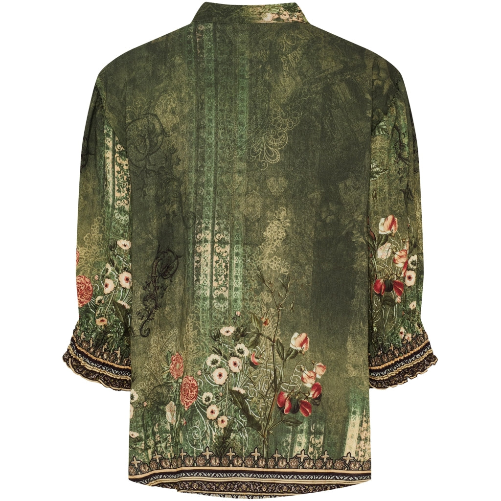 Feminin och elegant blus från Marta Du Château. Blusen har en v-ringning med knappdetaljer och smockdetaljer vid ärmarna. Blusen kan användas både till vardags med jeans och sneakers, och till festliga tillfällen med en kjol och stövlar.