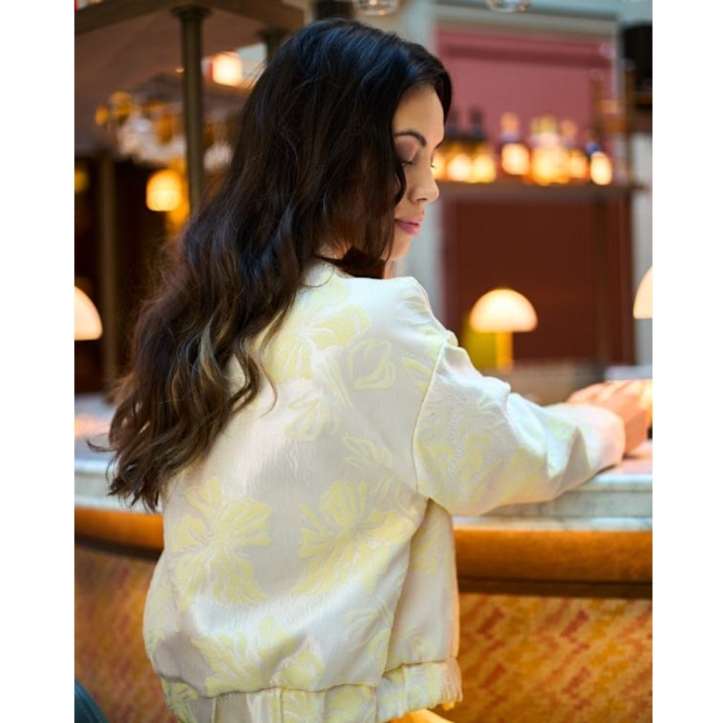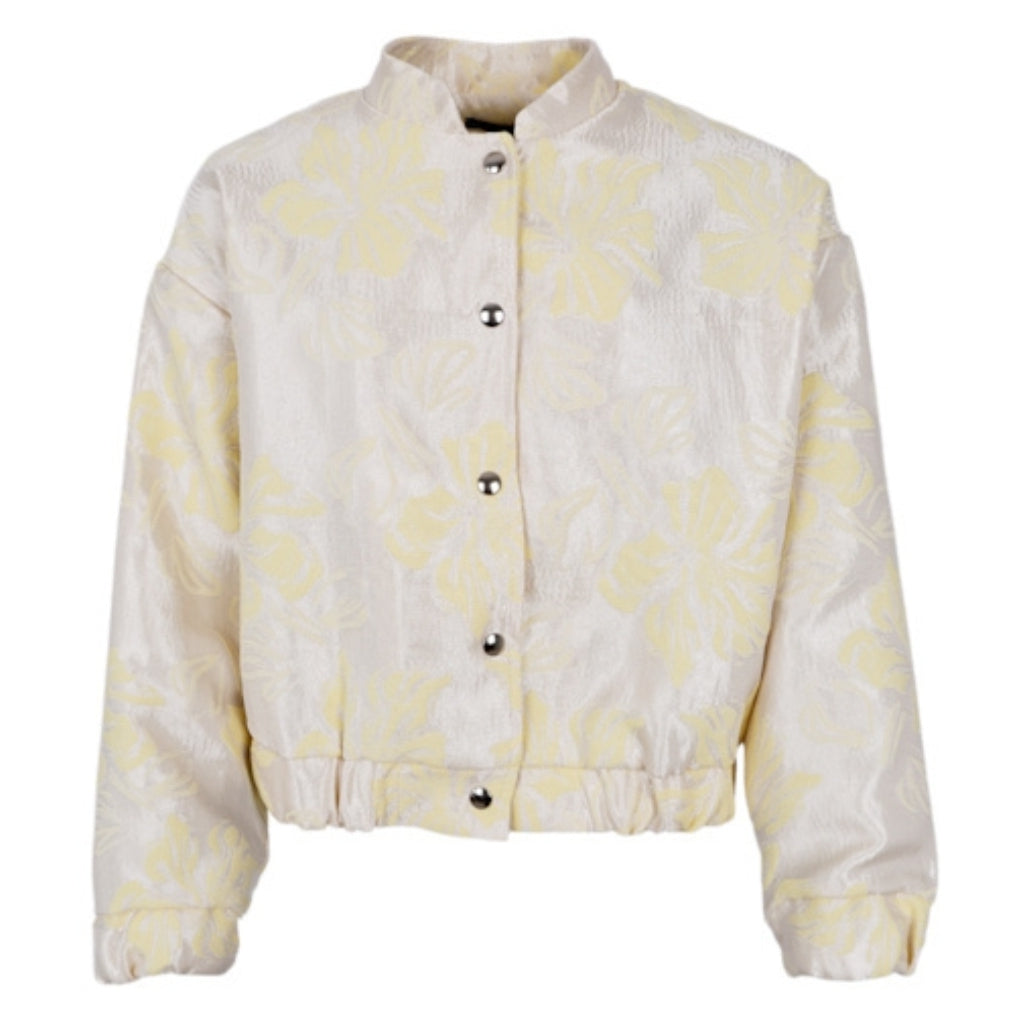 Let forårsjakke i en smuk strukturvævet kvalitet og et smukt skinnende blomstermønster, der giver et eksklusivt og stilrent udtryk. Den korte længde og let boxy pasform skaber en trendy silhuet, som er nem at style til både hverdag og mere dressed-up looks.