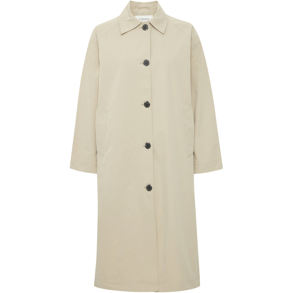 Super cool trenchcoat från b.young med knappknäppning. Super trendig och perfekt för vårens evenemang. Använd den med både jeans och kjolar beroende på vilken look du är ute efter.