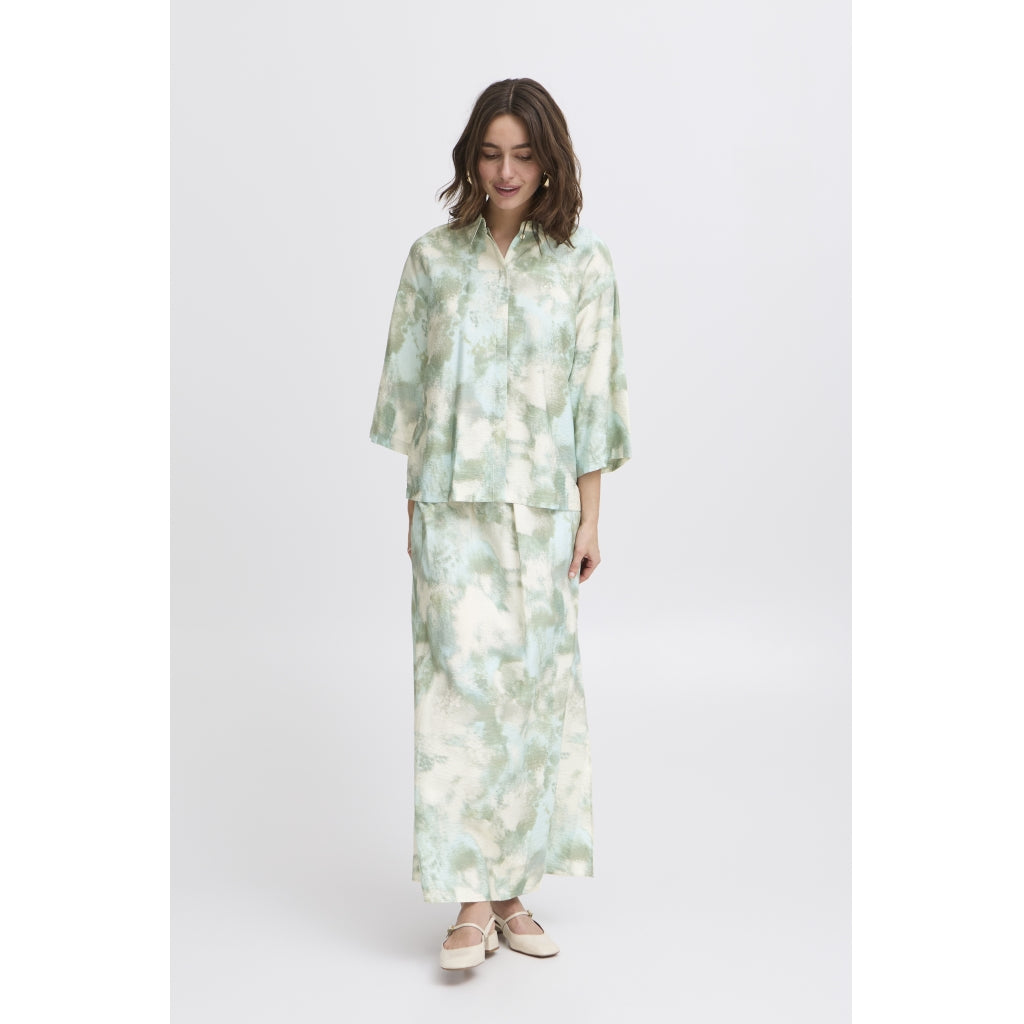 Cool skjorte fra b.young i det sejeste multifarvede print. Skjorten har 3/4 ærmer og er super sej med matchende bukser fra samme serie og et par slingback stiletter til.