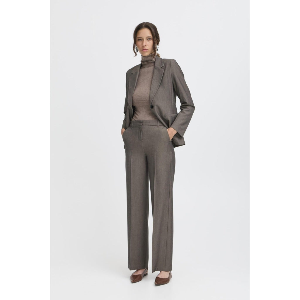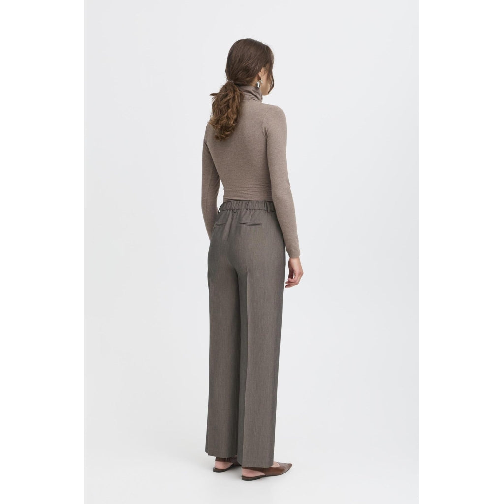 64% Polyester, 32% Viskos, 4% ElastanByxor från b.young som är normala i midjan och har en 'regular' passform, de är vida i benen.