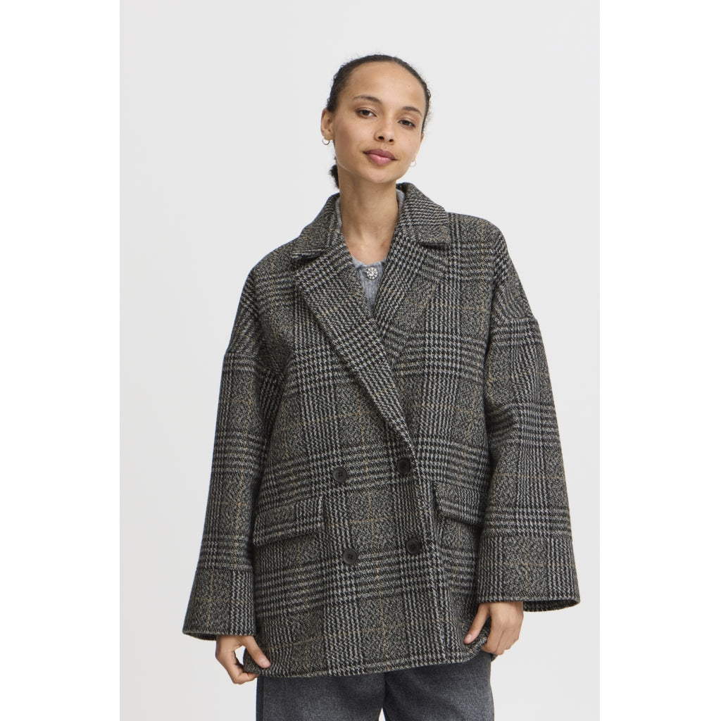 Snygg rutigkappa från b.young.Material: 65% polyester, 20% ull, 15% akryl