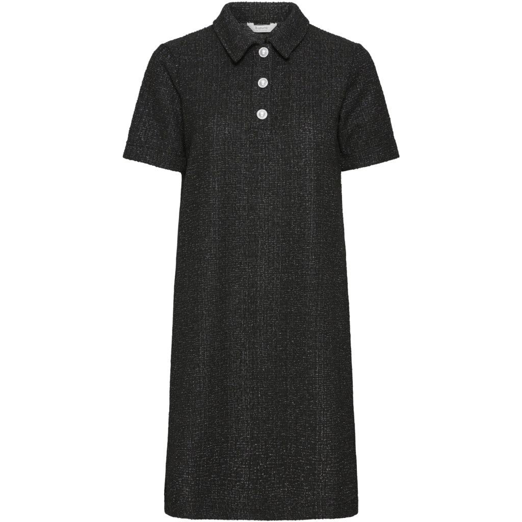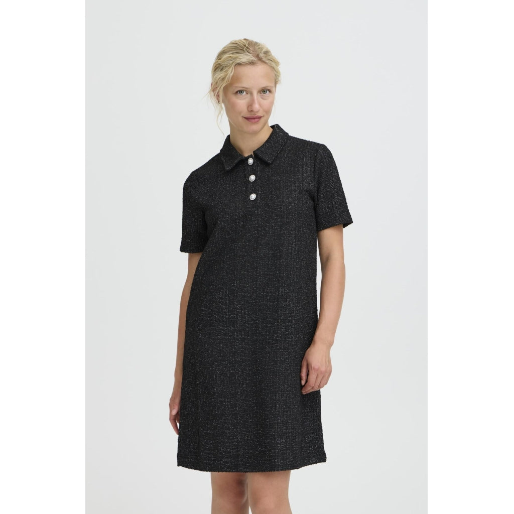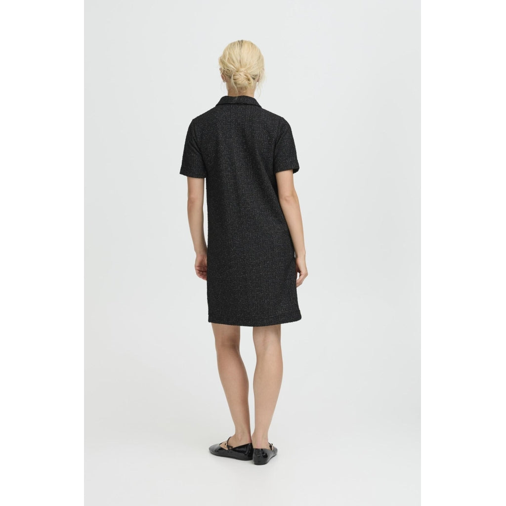 Elegant kortärmad klänning från B.Young i glittrande material. Den har krage och fina knappar längs med. Klänningen kan användas för alla tillfällen - styla med sneakers för en mer avslappnad look eller med klackar för finare användning.