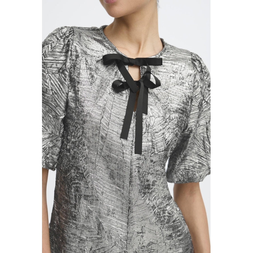 100% PolyesterFestklänning från b.young med vackra rosetter framtill.