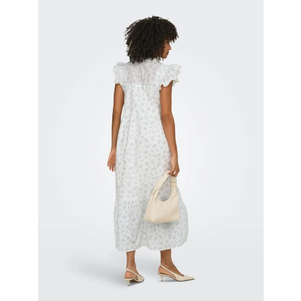 Lång fin klänning från Only. Styla med ett par stilettklackar eller ett par sneakers. - Puffärmar- Lång- Lätt att stylaMaterial: 100% Bomull