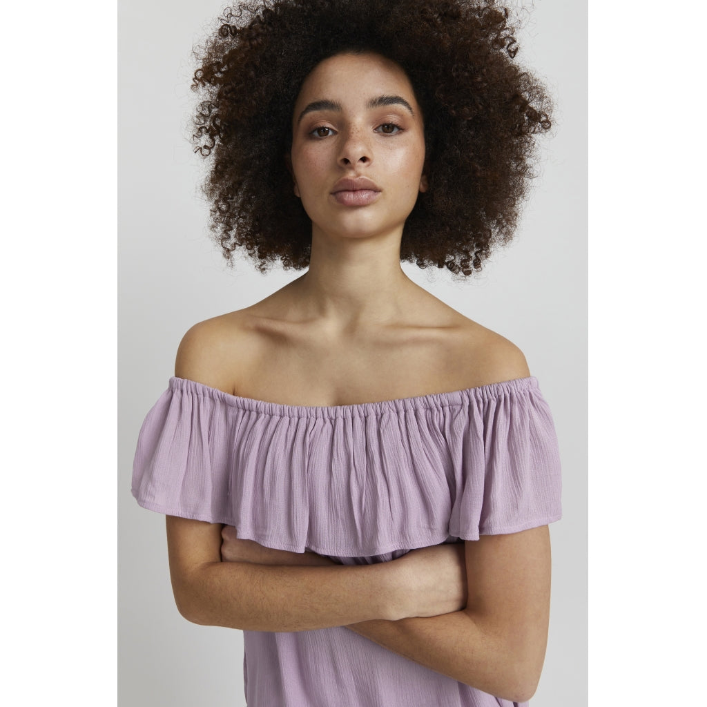 Fin blus från ICHI med off shoulder och volanger. Material: 100% Viskos (LENZING™ ECOVERO™)