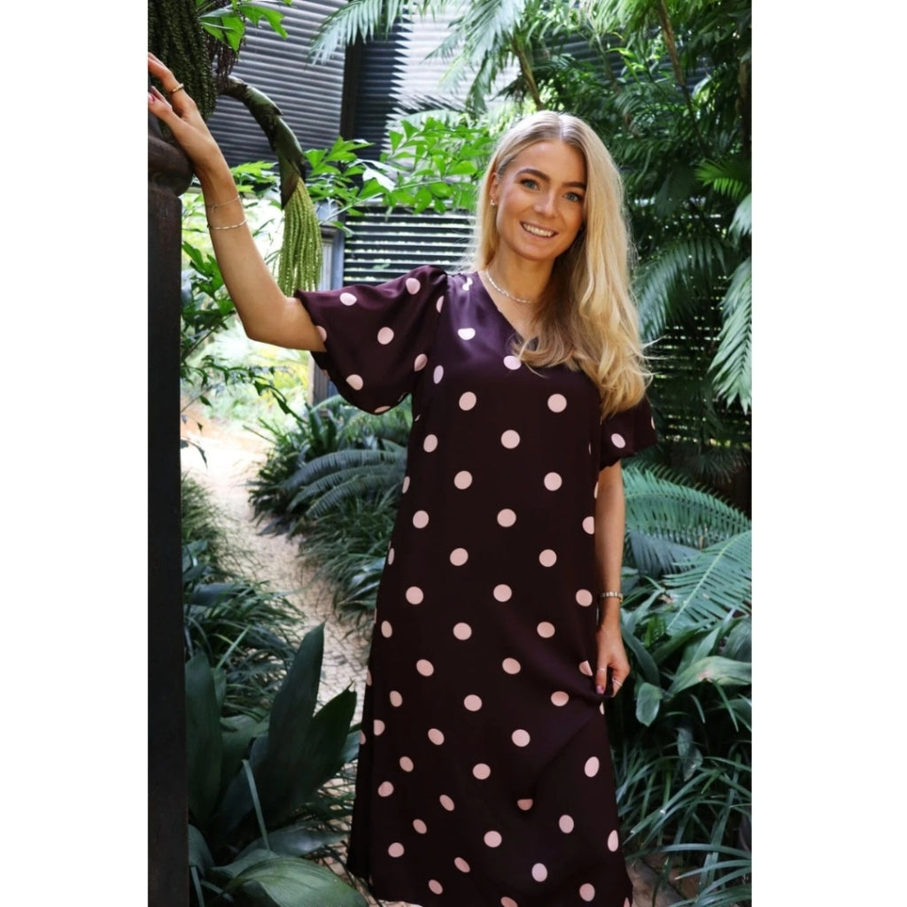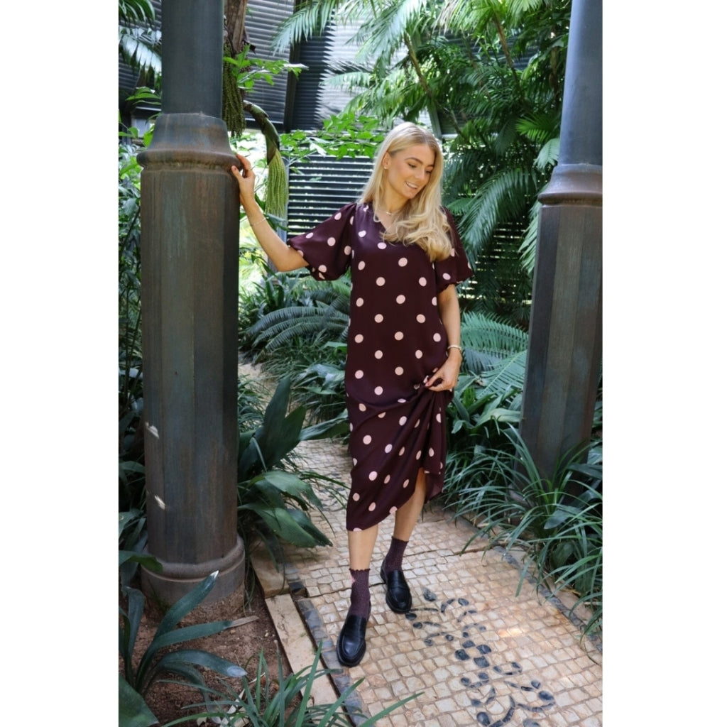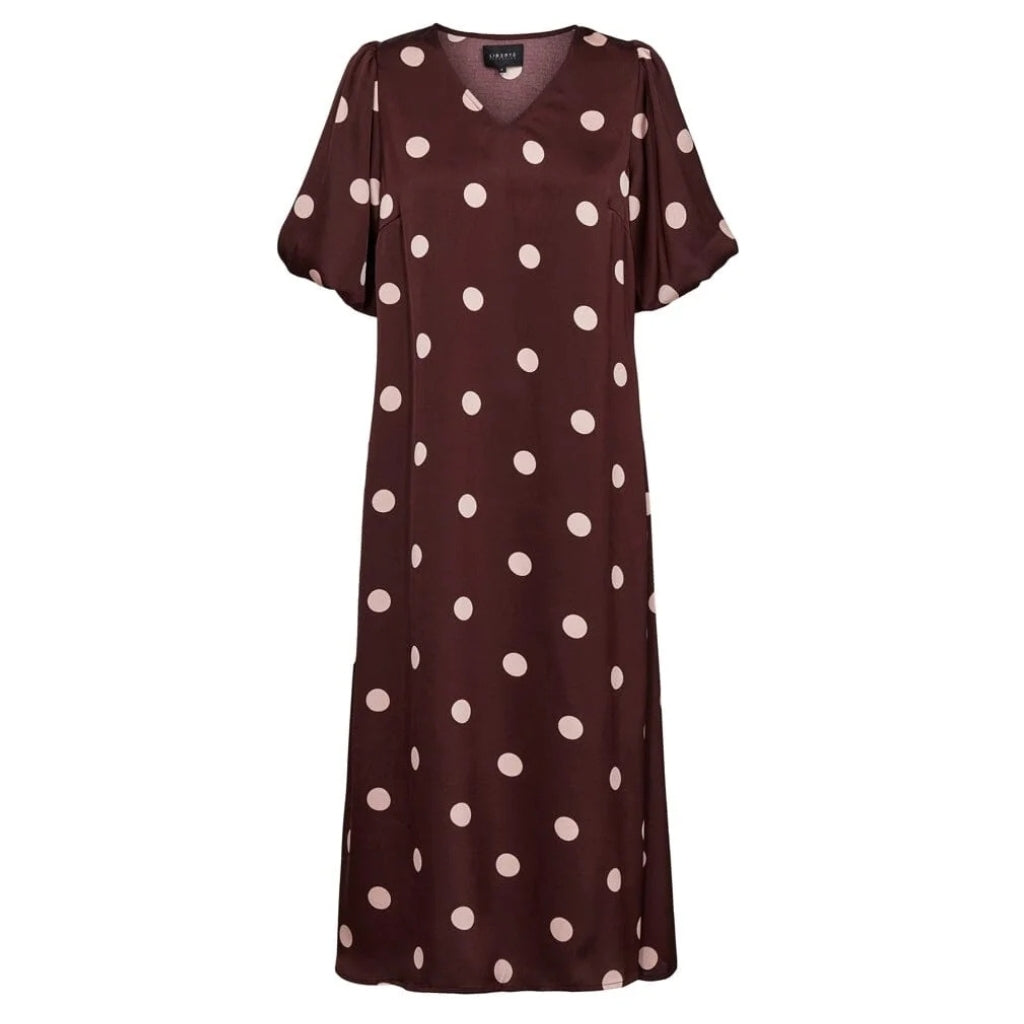 Vacker och feminin klänning från Liberte. Klänningen har ballongärmar och en v-ringad urringning. - Trendig- Mönster med prickar- MidiklänningMaterial: 100% Polyester
