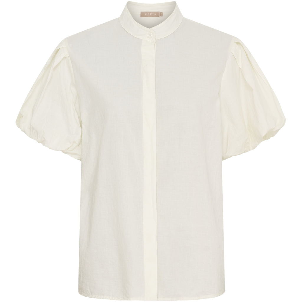 Superfin kortärmad skjorta från Marta du Château med puffärmar. Skjortan har genomgående knappar och en liten krage. Kan stylas med MdcRigmor eller MdcElva, som passar till eller ett par andra byxor eller jeans.