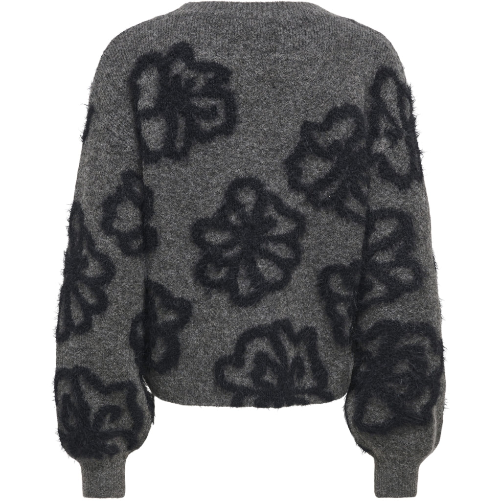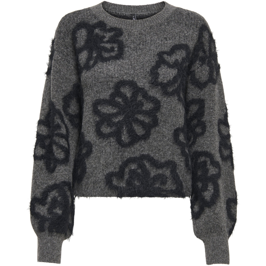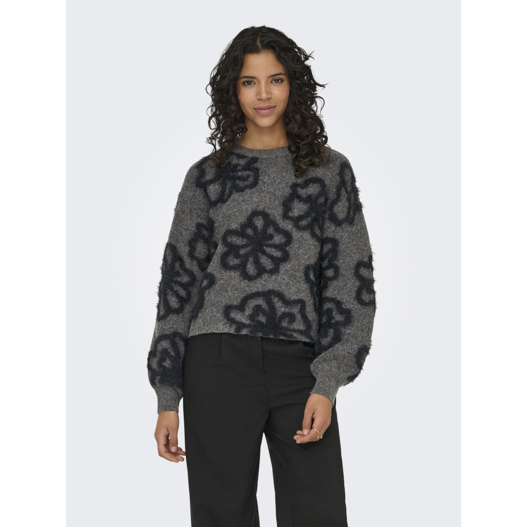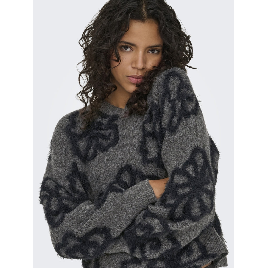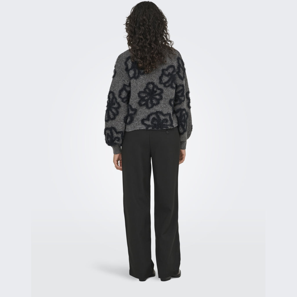 Mjuk stickad tröja med lös passform och rund hals, perfekt för kalla dagar. Den har långa, volyminösa ärmar och ribbkant vid ärmhålet för extra bekvämlighet.