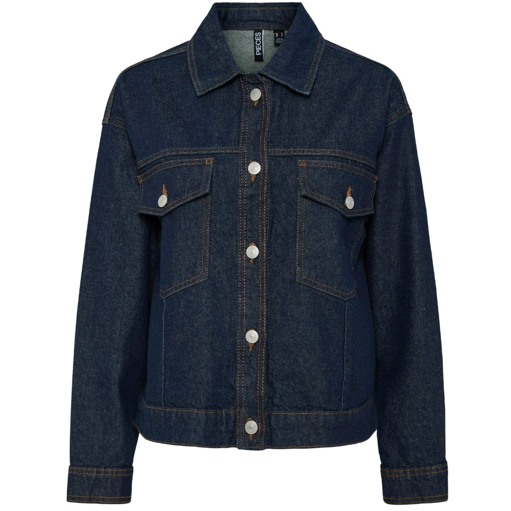 Supercool denimjacka från Pieces. Jackan är genomknäppt och har bröstfickor och den kan stylas med jeans för en komplett denim-on-denim look. Storlek upp för en mer oversized look.