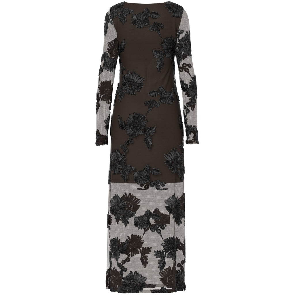 En vristlång klänning med rund hals och tight passform. Klänningen har långa, smala ärmar och meshdetaljer som ger en stilfull look.