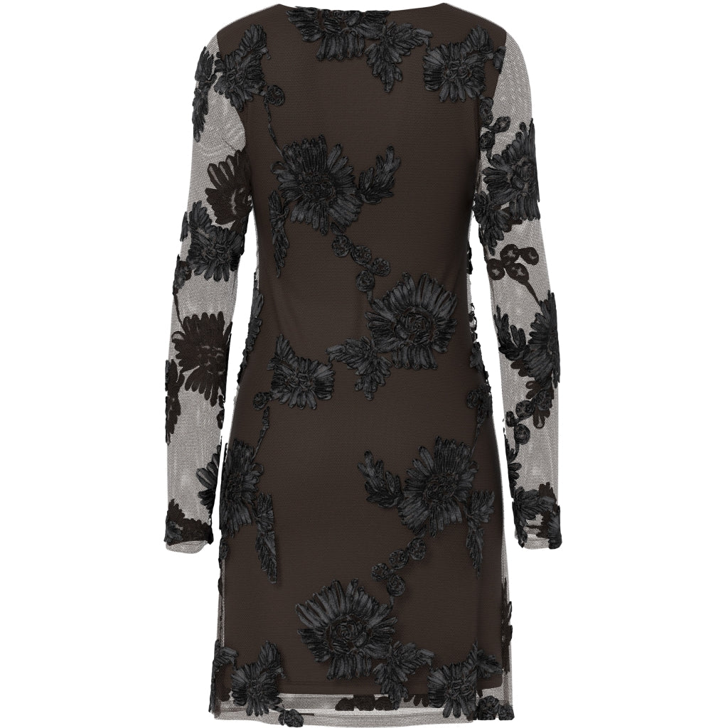 Kort klänning med tät passform och rund halsringning. Har långa, smala ärmar och en kort längd. Passar bra för festliga tillfällen.