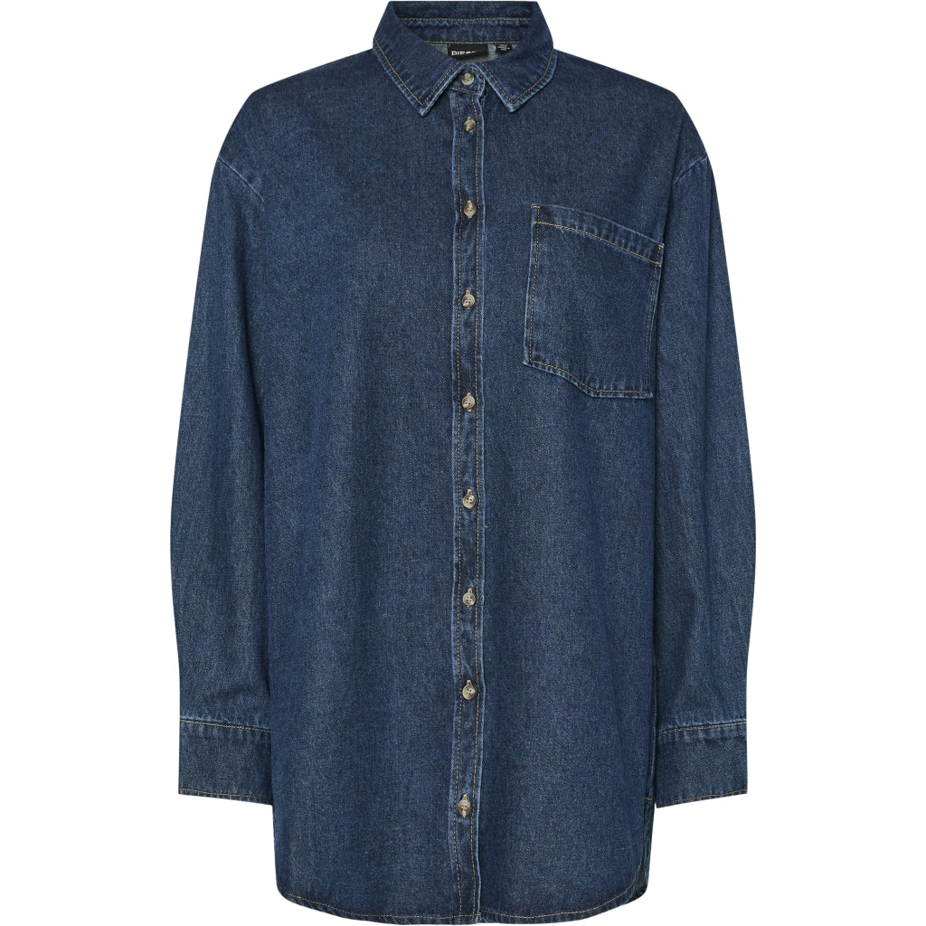 Snygg denimskjorta från Pieces med ficka på ena bröstet och små slitsar i sidan nedtill. Perfekt för vardagsbruk. - Rå look- Bröstficka- Knappar hela vägen nerMaterial: 80% Bomull, 20% Bomull - Återvunnen