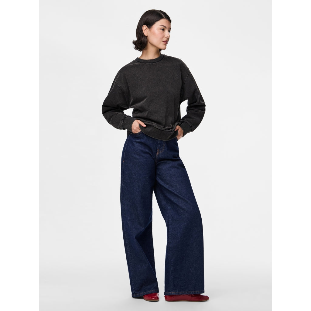 Lös sweatshirt med rund hals och sänkta axelsömmar som ger en avslappnad och bekväm passform. Perfekt för avslappnade dagar och lager-på-lager-styling.