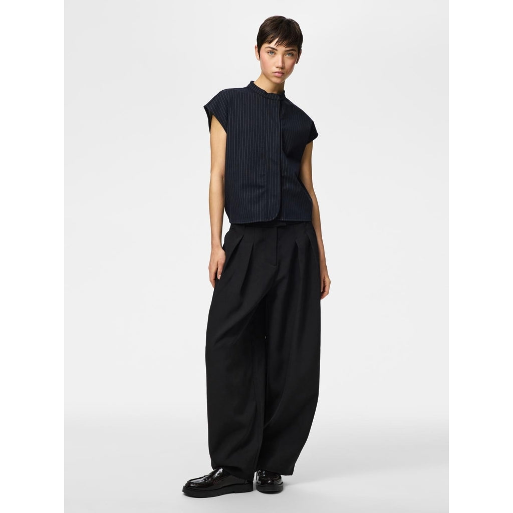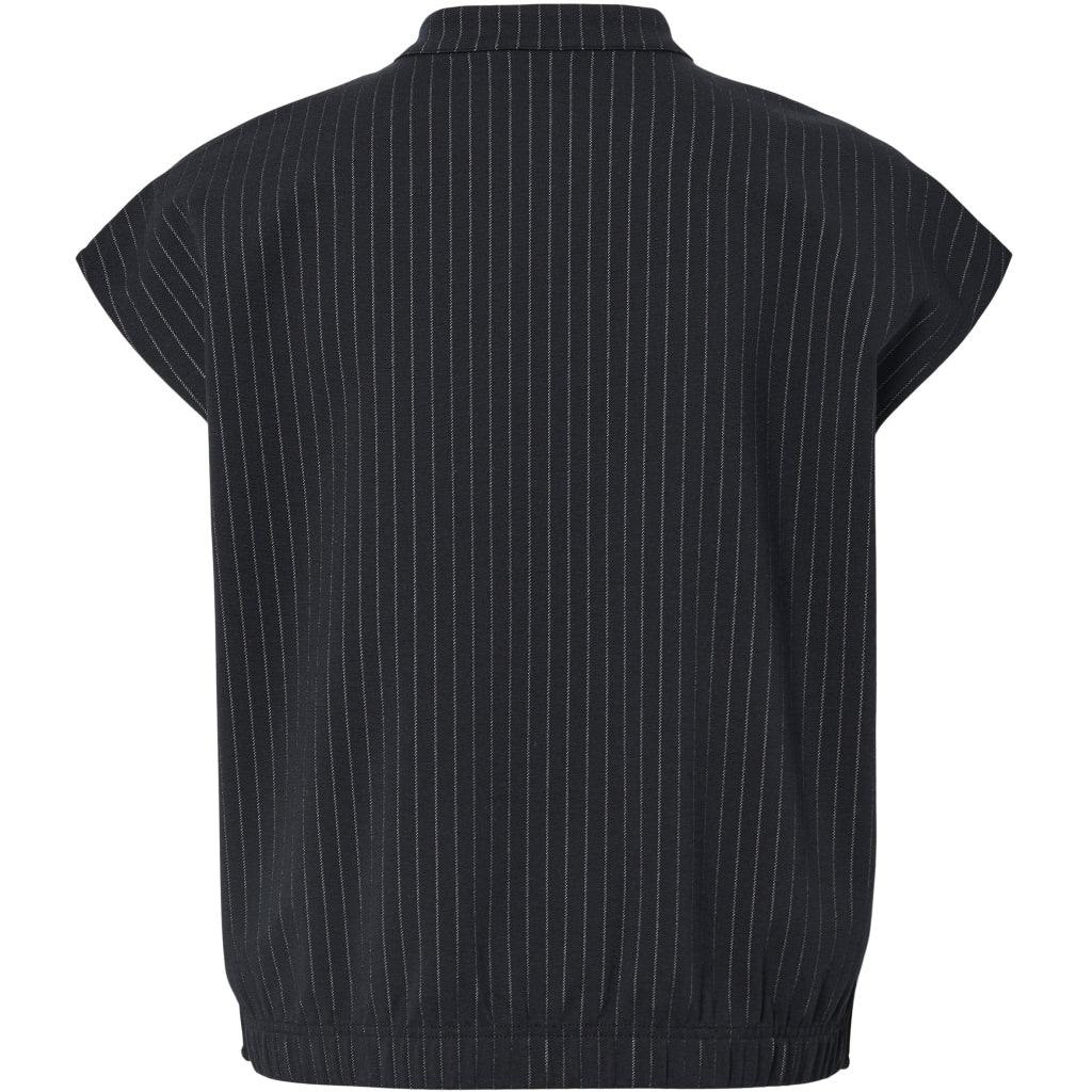 Ärmelös topp med rund hals och knappstängning som ger en avslappnad och boxig passform. Perfekt för avslappnat bruk hela dagen.