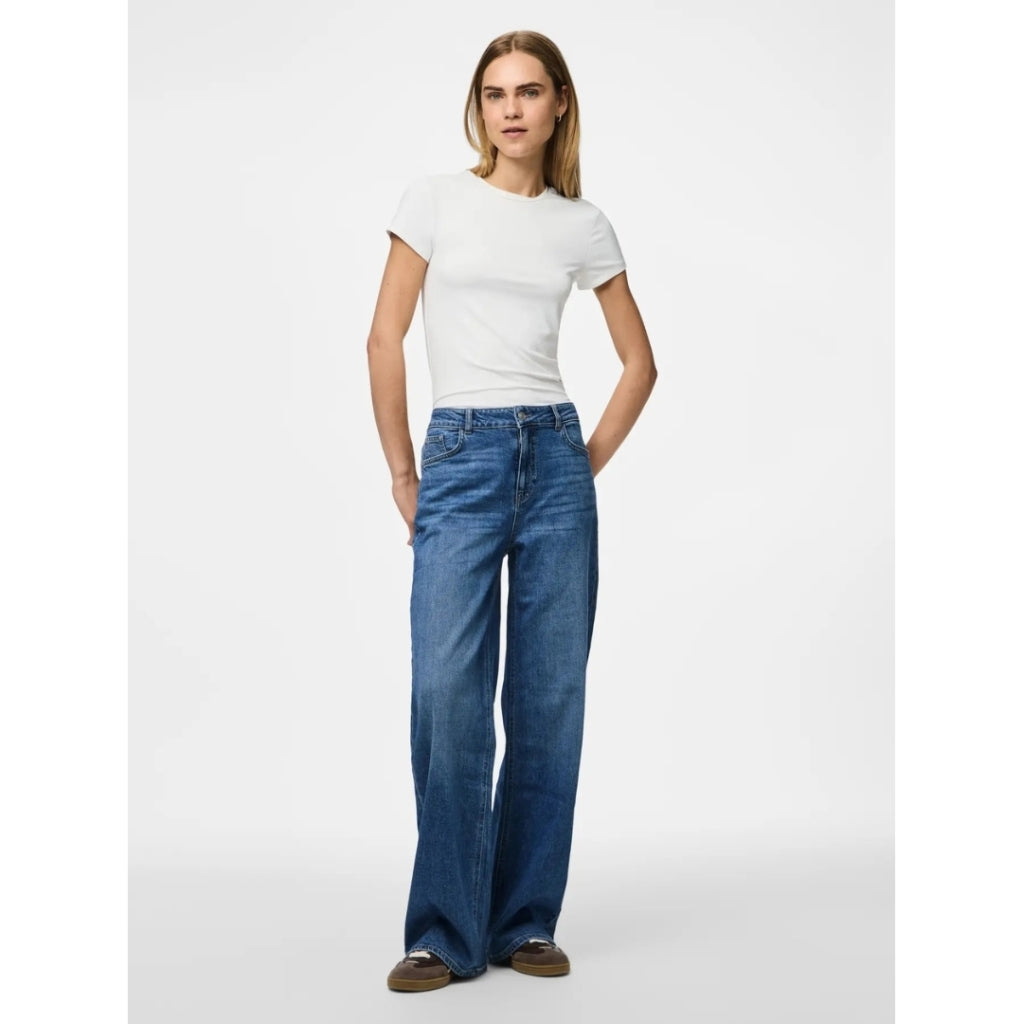 Seje jeans fra Pieces. Jeansen kan styles med en basis t-shirt og et par sneakers for et, cool look.- God pasform- Brede bukseben- Høj taljeMateriale: 79% Bomuld, 20% Bomuld - Recycled, 1% Elastan