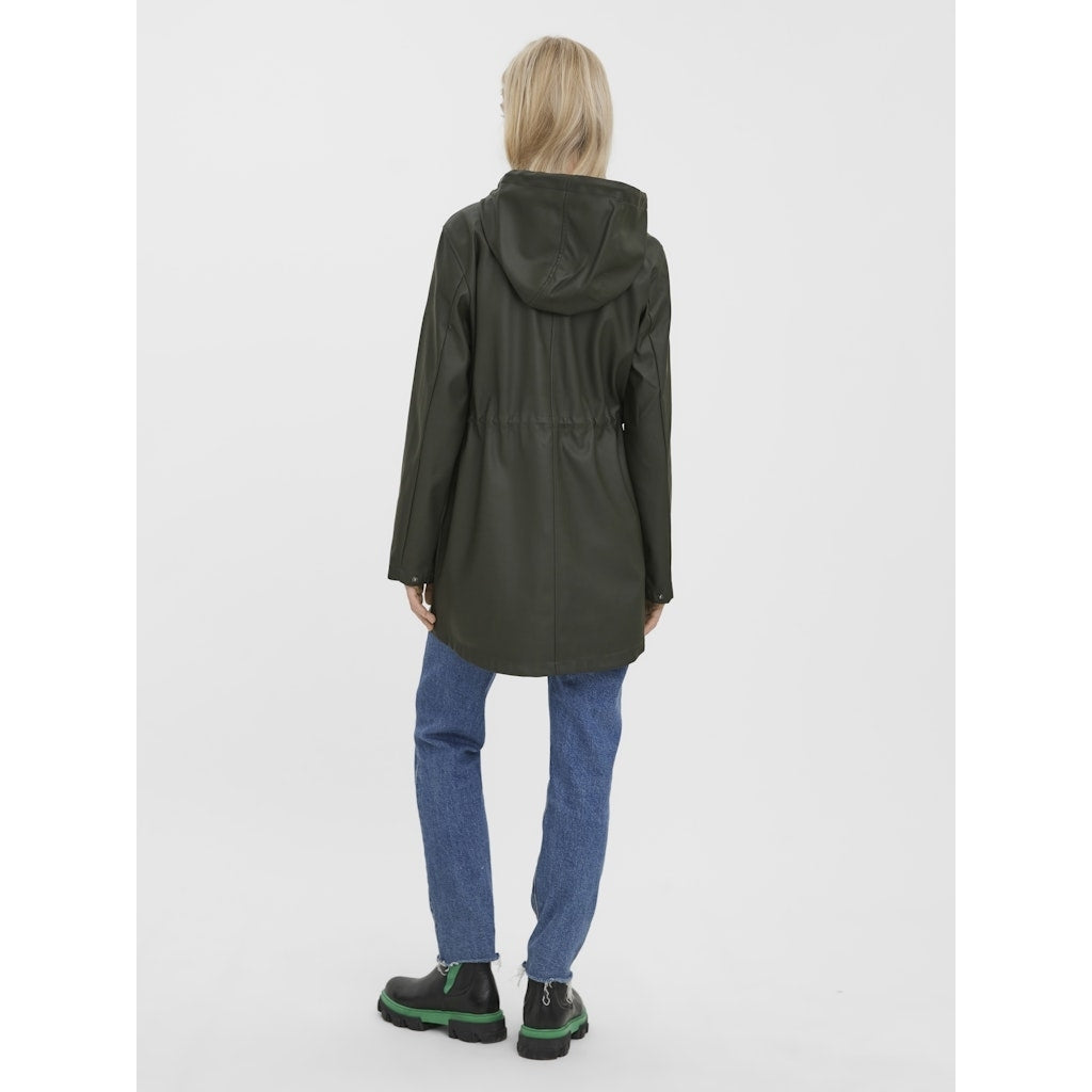 Smart regnjacka från Vero Moda. Jackan har huva, fickor på sidorna och snörning i midjan. Den håller dig torr på regniga dagar och är perfekt för både vardagsbruk och utomhusaktiviteter.
