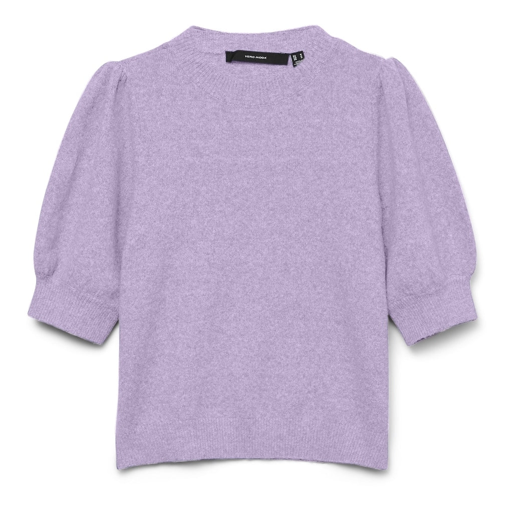 En stickad tröja med rund hals och 2/4 ärmar i puffstil, vilket ger en avslappnad och bekväm passform. Perfekt för avslappnade outfits året runt.