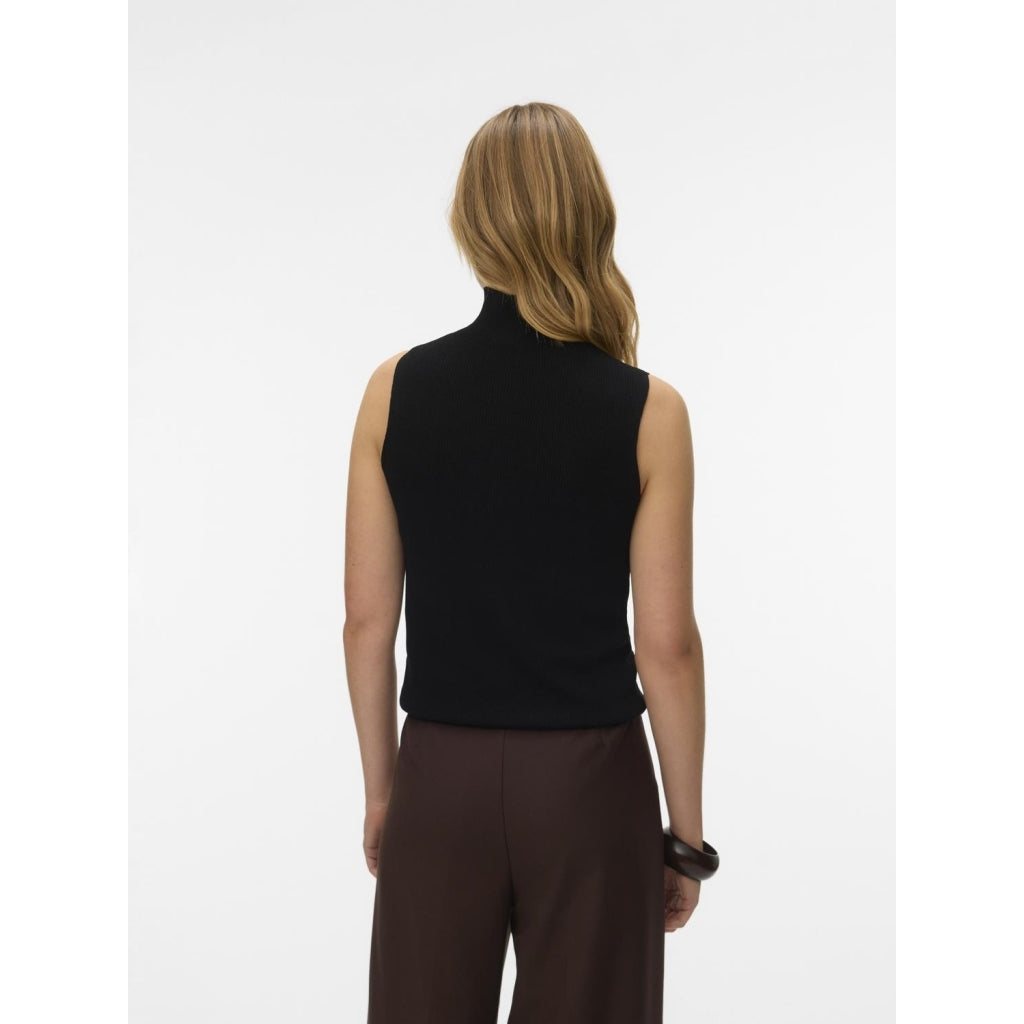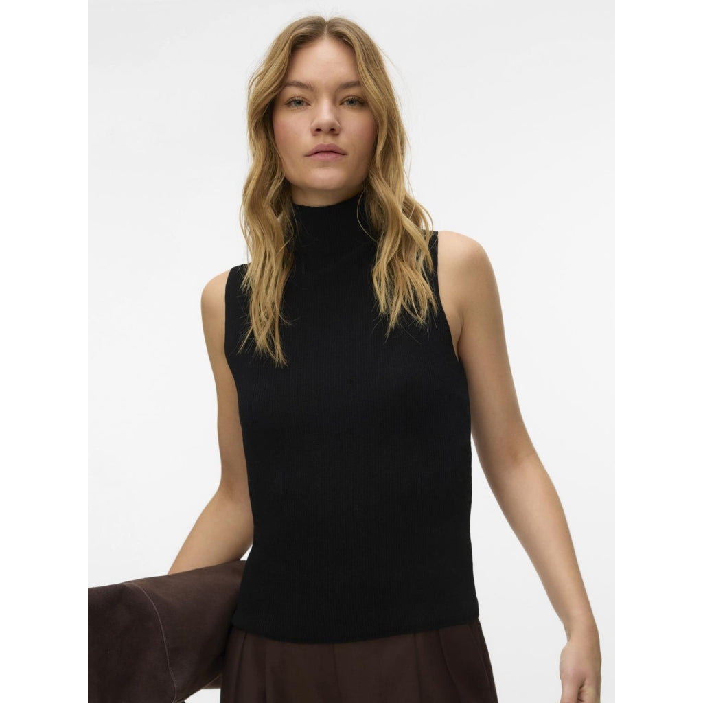 En stickad topp med hög krage och ärmlös design som garanterar en bekväm passform för vardagsbruk. Perfekt för layering med jackor eller lägg till smycken för en elegant touch.