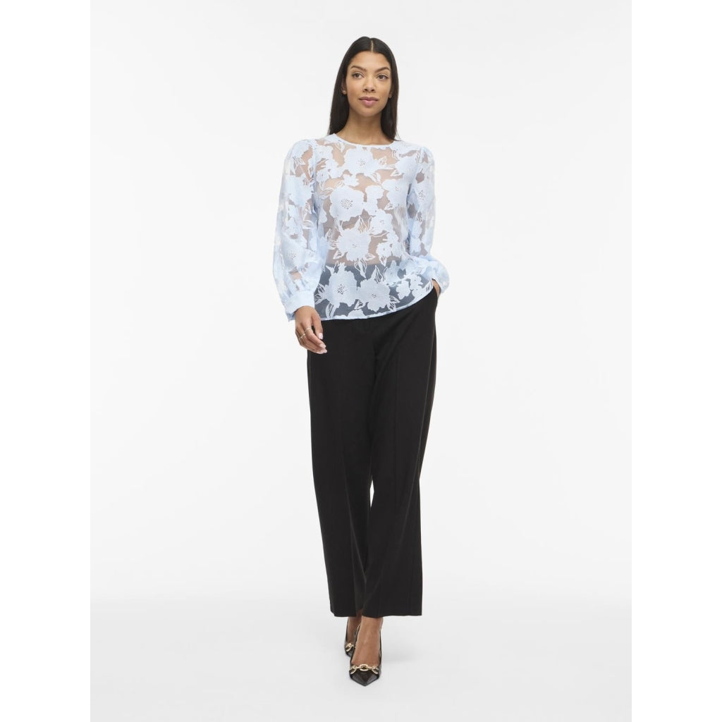Bluse med rund hals og lange ærmer, der giver et struktureret og holdbart look. Perfekt til hverdagsbrug med knappede manchetter og knaplukning.