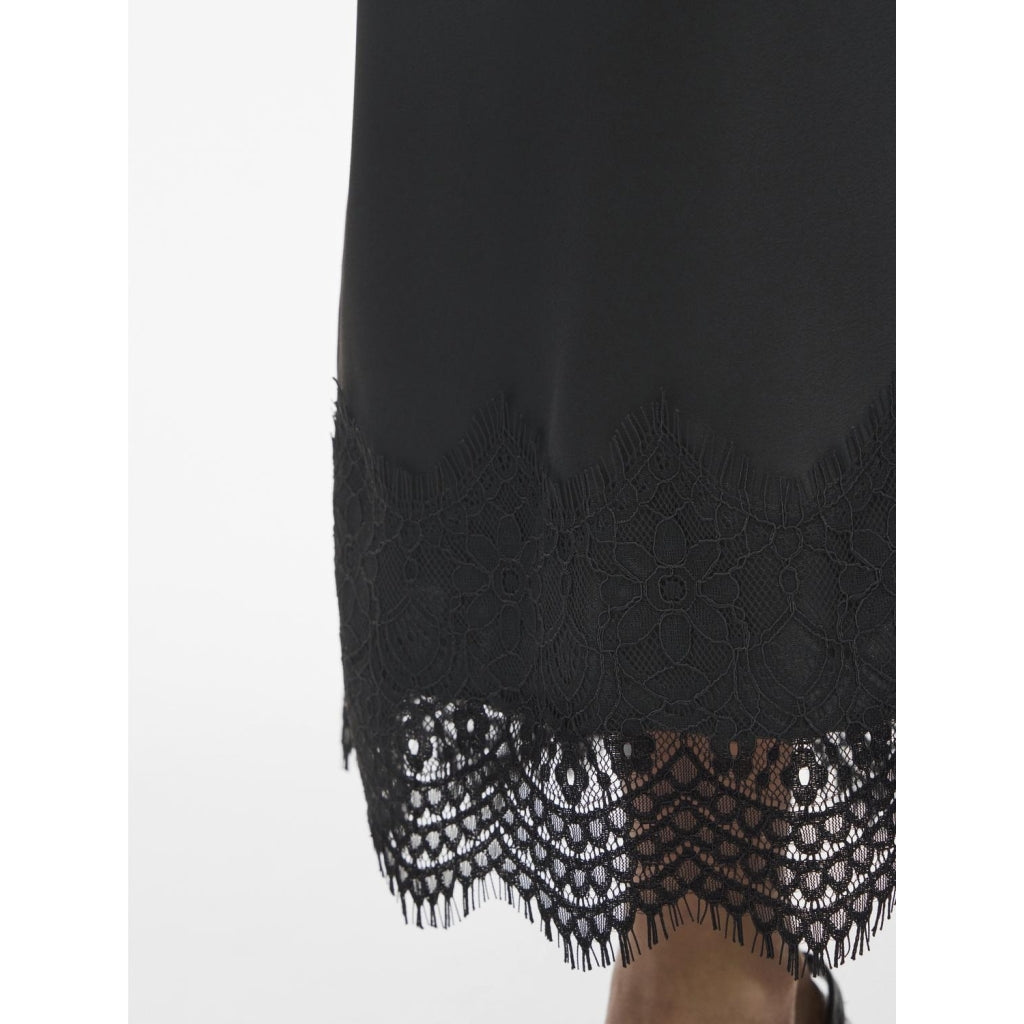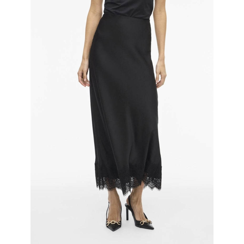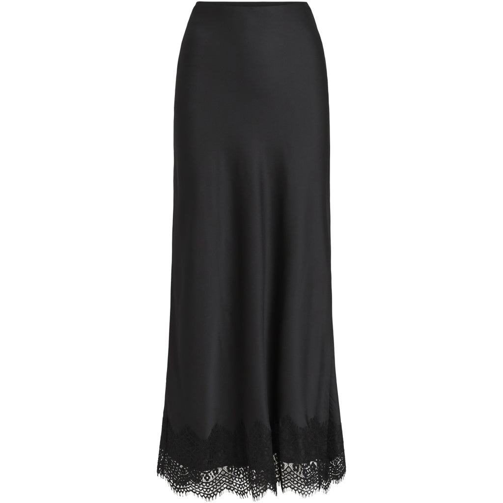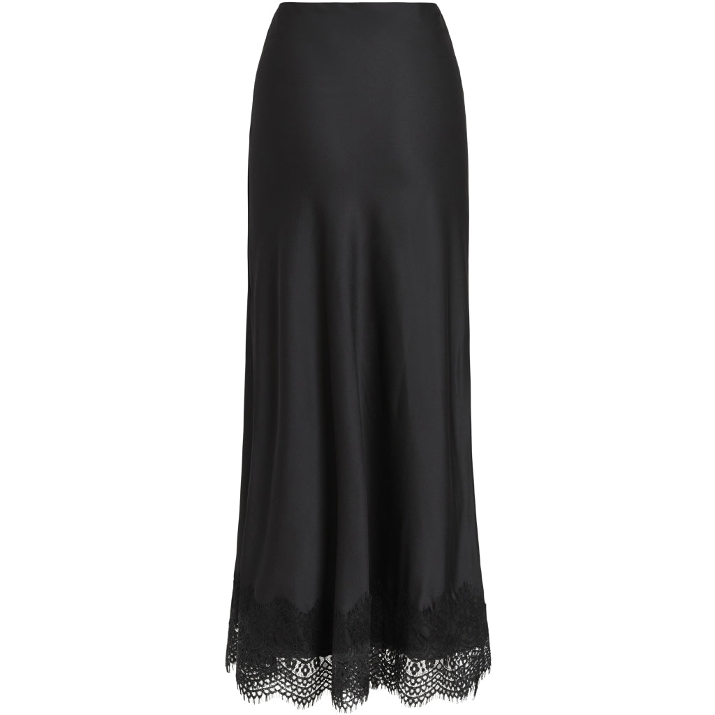En kjol med hög midja och resår i midjan, dekorerad med fina spetsdetaljer. Perfekt för både vardag och fest med en enkel topp och stiliga skor.