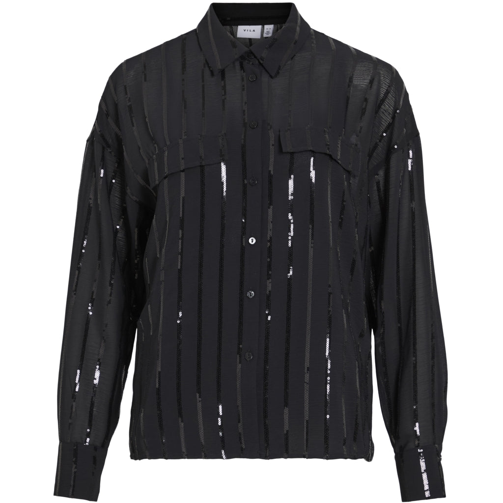 Långärmad skjorta med knäppning och klassisk krage, vilket ger en elegant look med glittrande detaljer. Perfekt för speciella tillfällen eller festkvällar.