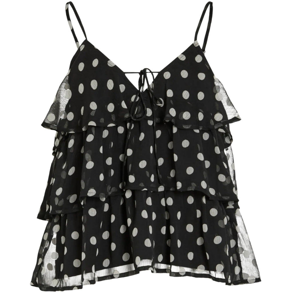Vackraste toppen med volanger. Styla för vardag med ett par jeans och använd den med en kjol för sommarens fester. - Smala axelband- Elegant- Knäpps bakMaterial: 100% polyester - Återvunnen