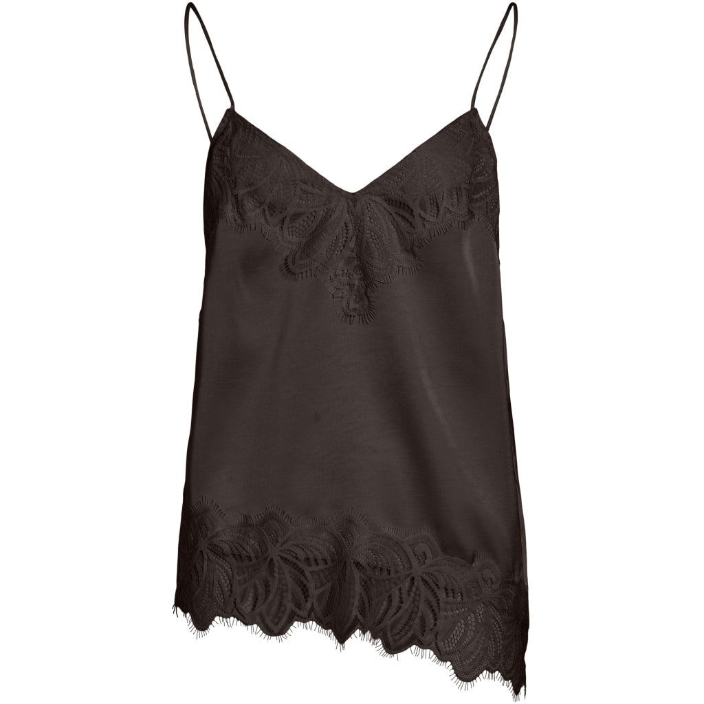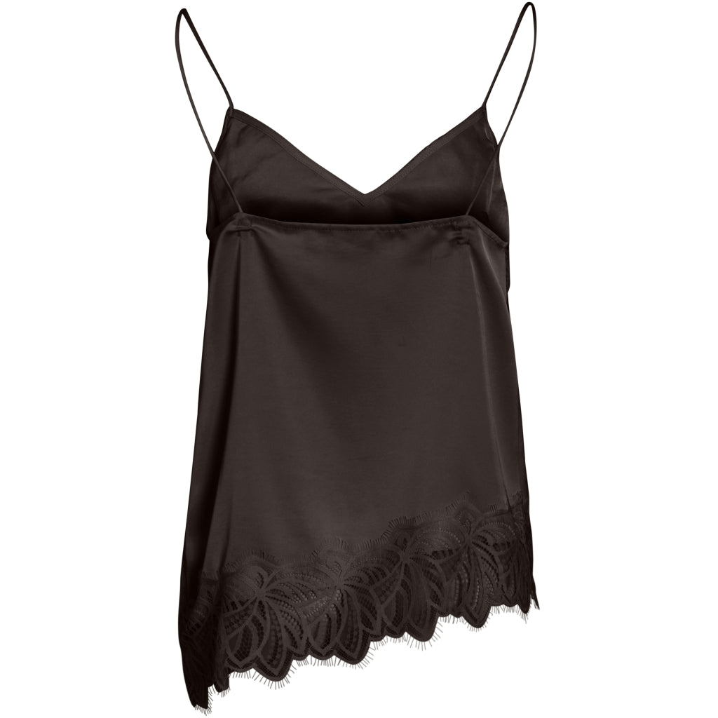 Lätt och elegant topp med V-ringning och ärmlös modell i satin som garanterar en slät yta. Regular fit och spetsdetalj gör den lämplig för både vardag och fest.
