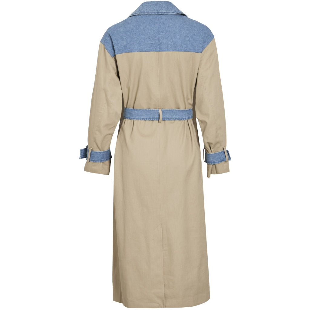 Lätt och slitstark trenchcoat med bikerkrage och kontrastsömmar, perfekt för våranvändning. Har justerbara spännen vid ärmarna och stängs med bälte och dubbelknäppta knappar.