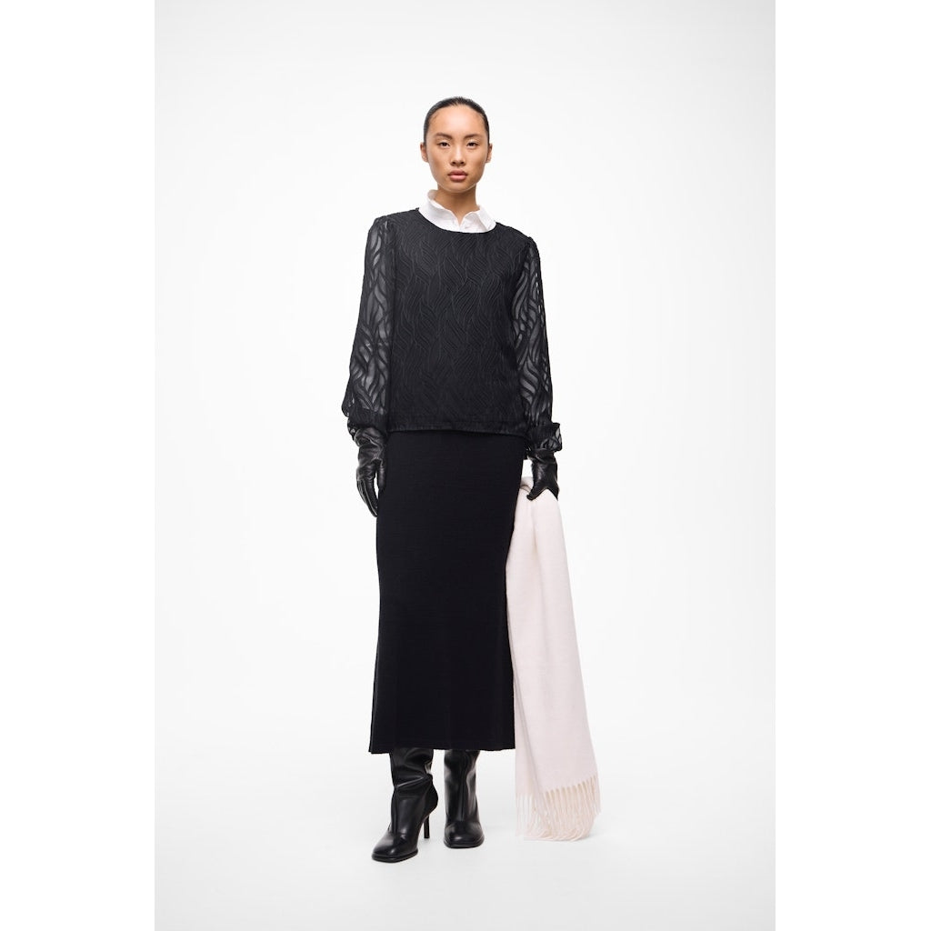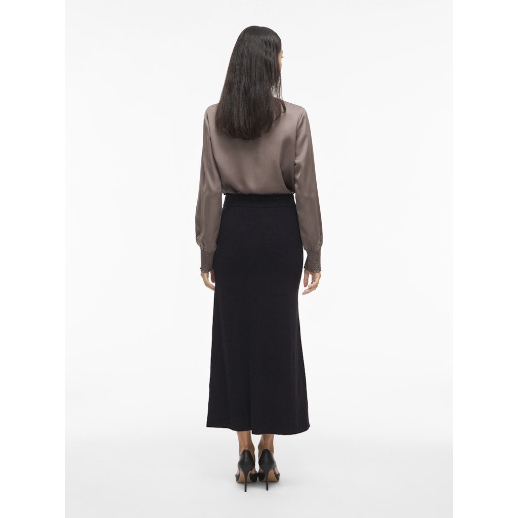 Elegant och feminin stickad kjol från Vila, som är ankel lång. Kjolen kan användas till vilken outfit som helst - en skjorta och sneakers för vardag eller en topp, kavaj och stilett för finare bruk.
