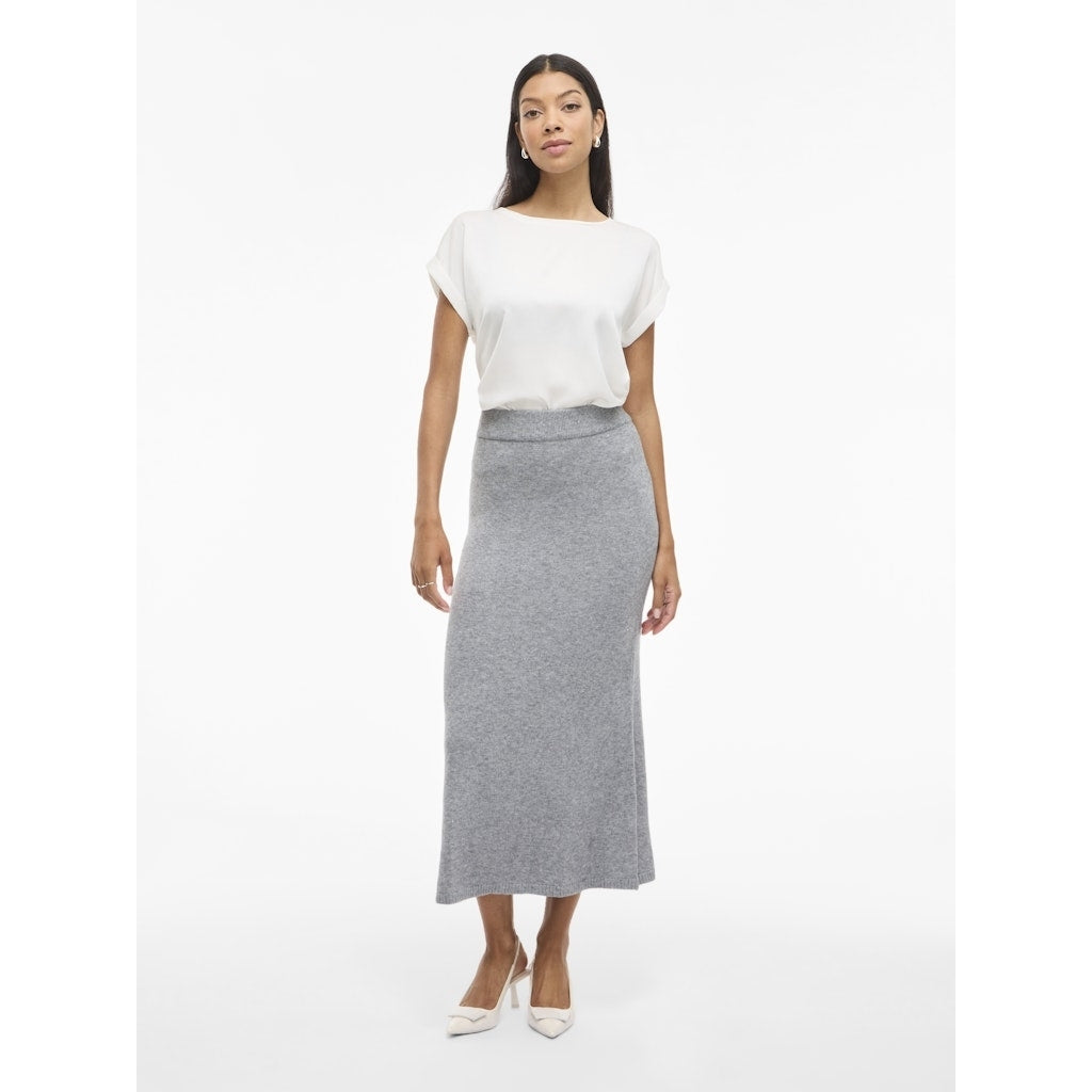 Elegant och feminin stickad kjol från Vila, som är ankel lång. Kjolen kan användas till vilken outfit som helst - en skjorta och sneakers för vardag eller en topp, kavaj och stilett för finare bruk.