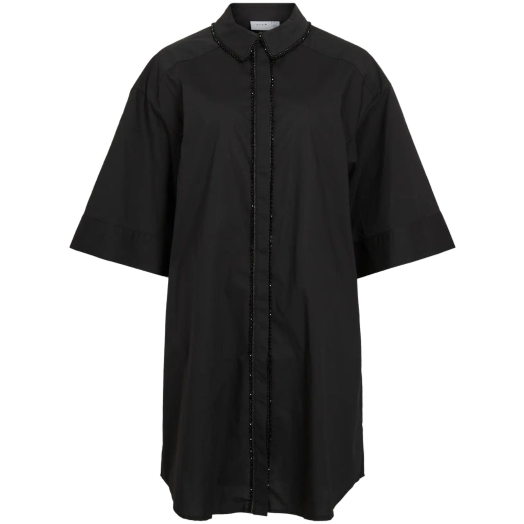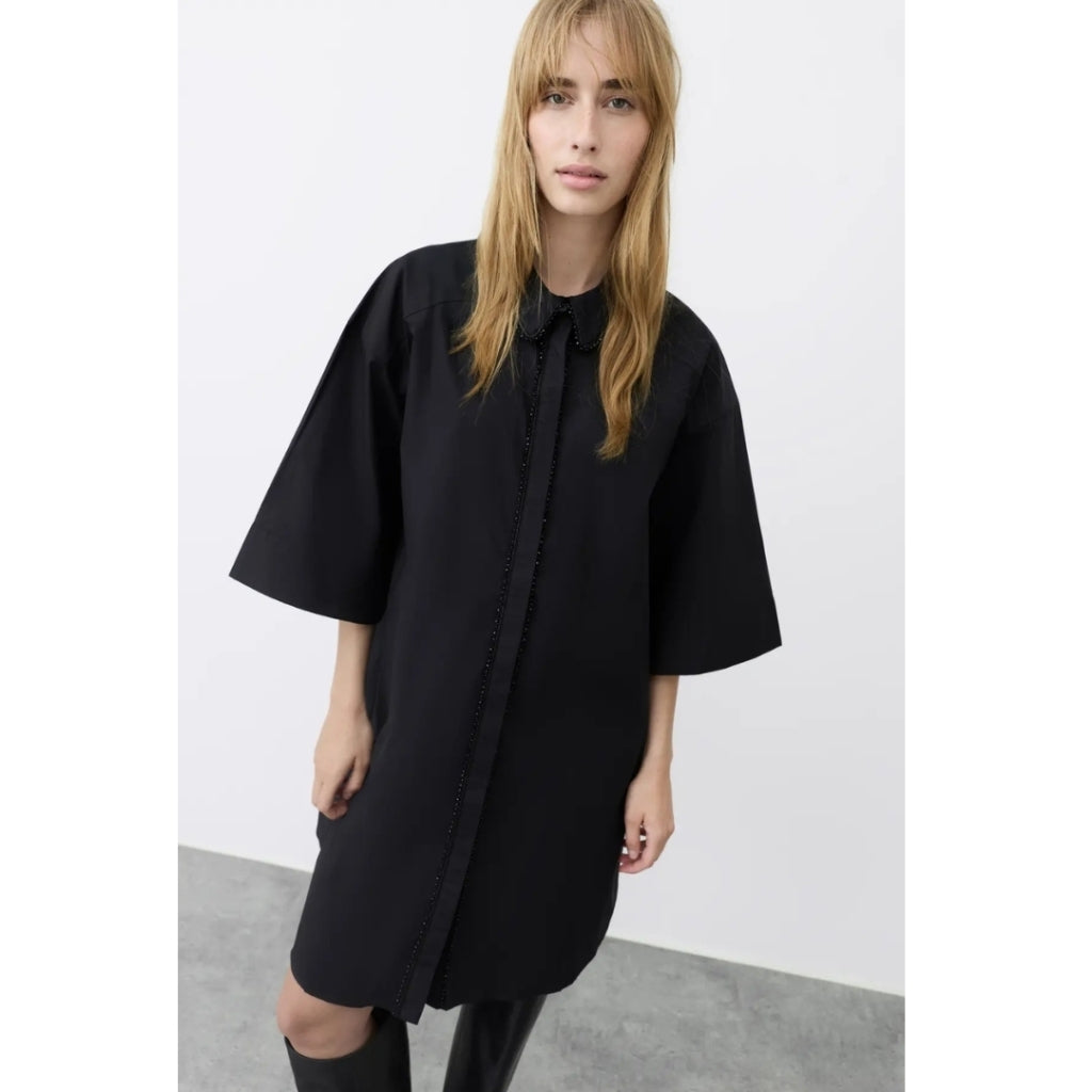 Vacker och enkel bomullsklänning. Styla den med ett par höga stövlar för en tuff look.- T-shirtklänning- Glittriga detaljer- KrageMaterial: 100% Bomull