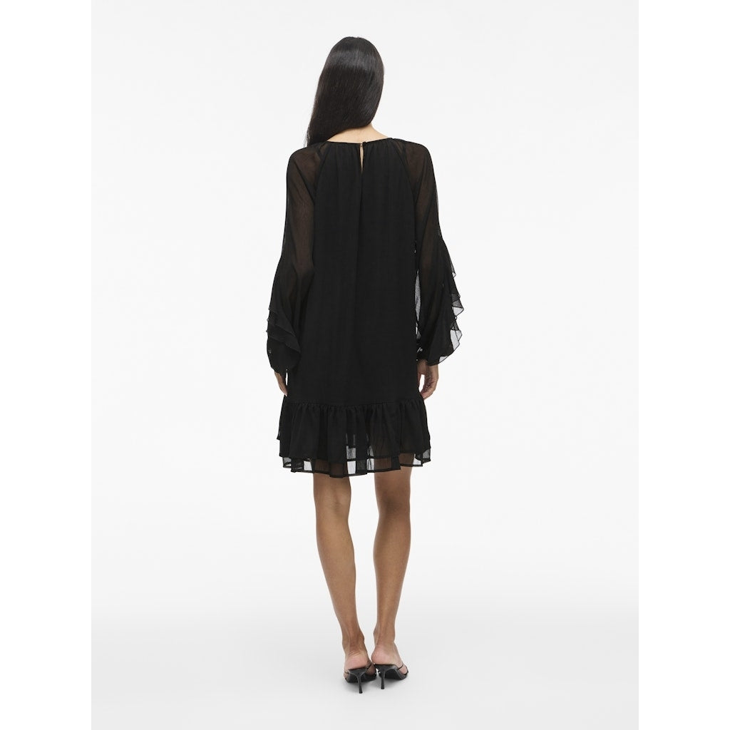 100% PolyesterVäck uppmärksamhet med denna stilsäkra klänning.Produkttyp: KlänningHalsringning: Rund halsÄrm: LångärmadStängning: Knapp- och hakestängningExtra detaljer: VolangerPassform: Normal passform