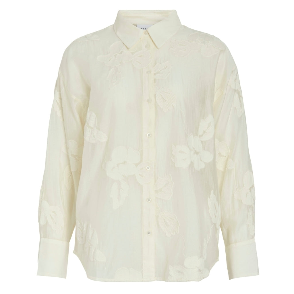 Underbaraste skjortan från Vila med spetsdetaljer. Styla den med ett par jeans för en mer avslappnad look.- Spetsdetaljer- Långärmad- Genomskinlig- Material: 83% Lyocell TENCEL™, 17% Polyester