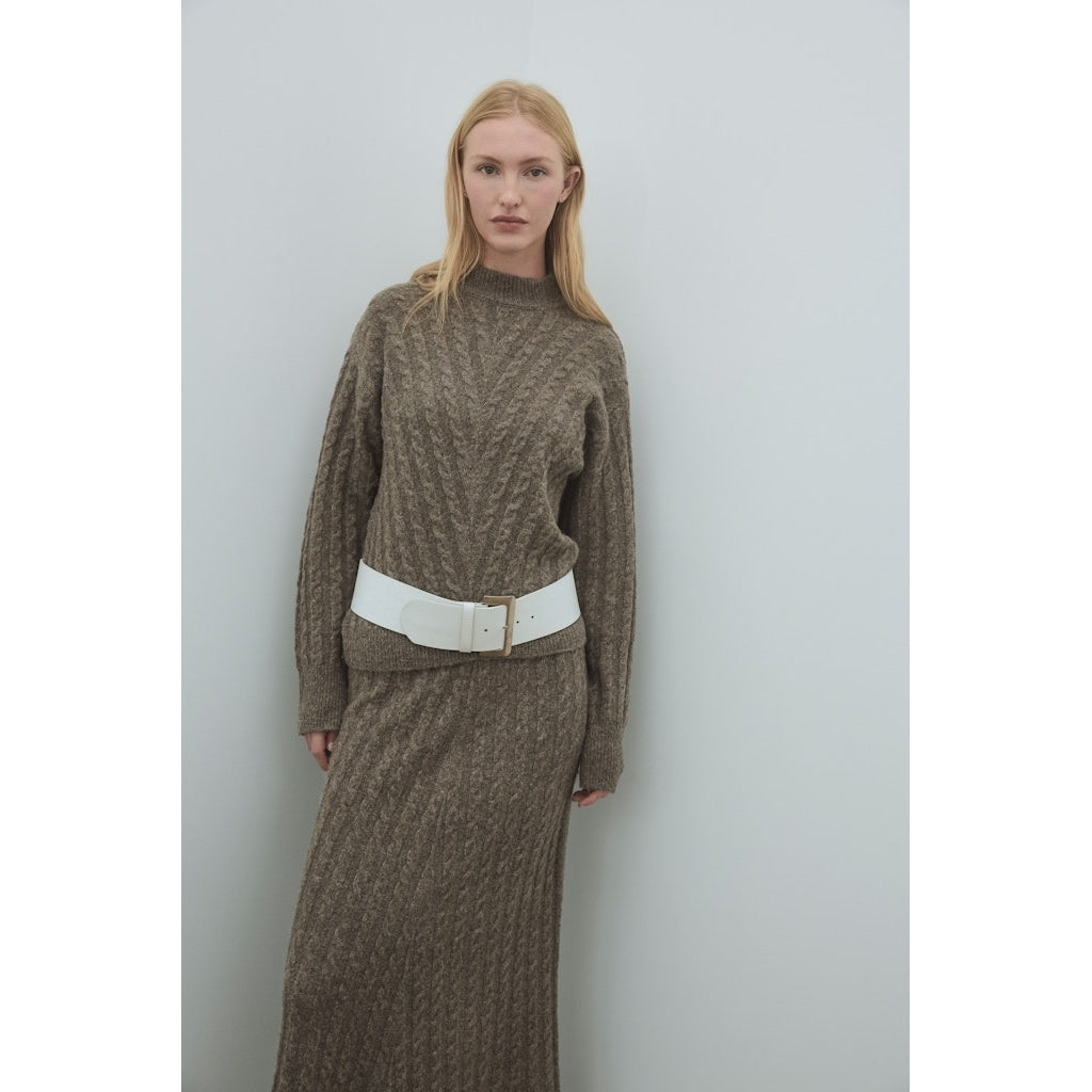72% Polyester, 28% NylonDenna stickade tröja är perfekt för alla tillfällen och säsonger.Produkttyp: Stickad toppHals: Hög halsÄrm: LångärmadExtra detaljer: KabeldetaljPassform: Normal passform