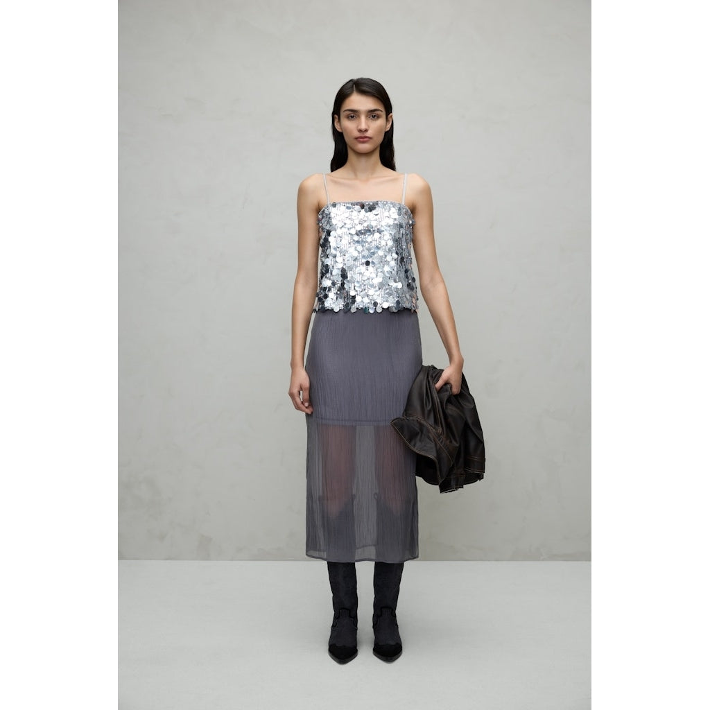 Snygg glittrig paljett-topp från Vila med justerbara axelband. Toppen passar perfekt för de kommande festligheterna - och kan matchas med den matchande kjolen.
